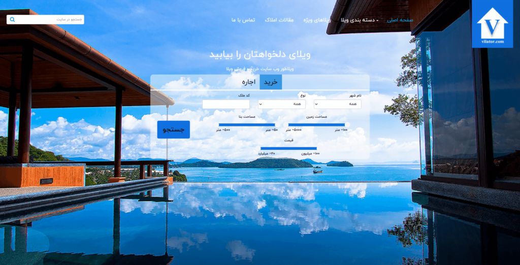 این سایت نمونه ی خوبی از هدف قرار دادن مشتریان خاص است. این سایت فقط برای ویلا اما در موقعیت های مکانی و قیمت های متفاوت است که با دسته بندی های مختلف و قابلیت سرچ ساده و فیلتر دار این کار را تا حد زیادی برای شما ساده می کند. ناگفته نماند که گزینش هوشمندانه یک بک گراند ساحلی، هدف اصلی سایت را برای بازدید کننده برجسته تر می کند (البته می توانست کیفیت بهتری داشته باشد).